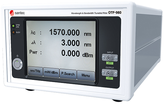santec株式会社(本社 愛知県小牧市)は、C&L-bandの広帯域波長可変可能で非常に急峻なフィルタスロープを持つ電動型可変光フィルタ(型名:OTF-980)を製品化いたしました。同社の従来製品と比較してフィルタスロープが2倍以上の急峻なフィルタを実現しました。また、電気回路の一新を図ることにより、ユーザーフレンドリーなタッチパネルスクリーンによる制御、GPIB、USB及びEthernetの通信による制御が可能となっております。400ギガビット/秒以上の次世代超高速光通信において、周波数利用効率を向上させるため高密度で波長多重されており、その光信号の波長選択、雑音光の除去および伝送テストのために、ますます急峻な光フィルタが必要となってきています。サンテックが開発したユニークな光学系設計と高精度可変メカニズムにより、優れた光学特性とフィルタスペクトルを実現しており、上記用途に最適な製品となっております。