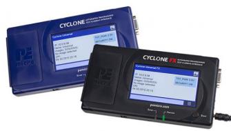 Cyclone Universal FXに関しては、最大25MB/S速度を実現させ、書き込みの高速化を実現させています。Cycloneが持つ内臓メモリ以外に、SDHCポートがサポートされ、SDHCメモリカードに書き込みイメージを入れて、その書き込みが可能です(ソフトウエアオプション必須)。新しい機能として、拡張セキュリティ機能(アンチタンバ技術、内部メモリ保護と暗号化、特定のCycloneで利用できるようにイメージを、日付範囲に制限イメージプログラミング、プログラミング操作のリミット設定、すべてのプログラミングイベントのロギング)が強化されています。また、拡張ポートとして、プログラミング制御ヘッダ(ピンを介して、トリガ・プログラミングとステータスリードやUSBホスト・デバイスポートを介して、スキャナなどの外部付けのUSB周辺機器用にサポートしています。