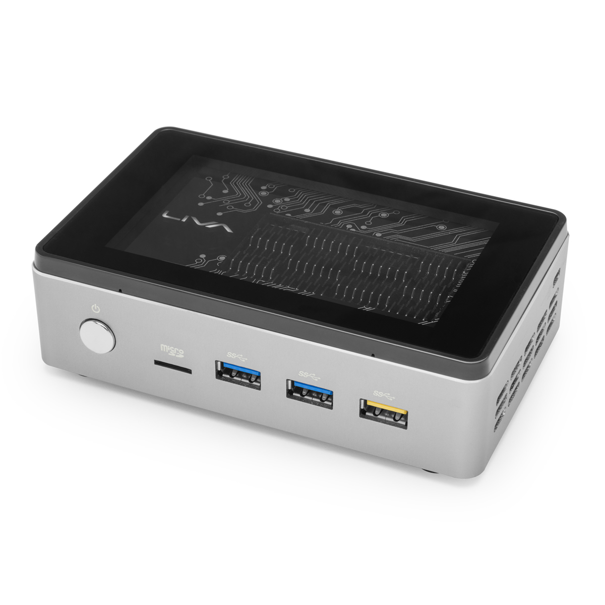 LIVA Coreは、WindowsベースのデスクトップPCを実現した高性能小型ベアボーンです。Intel(R) Broadwell-Y SoC、CoreTM M-5Y10c Processor搭載、Intel(R) HD Graphics 5300により4K高解像度出力に対応しています。ファンレス設計によって完全無音動作します。容量4GBの低電圧DDR3Lメモリ、有線接続のギガビットLAN、高速ワイヤレス通信が可能なWi-Fi 802.11ac、Bluetooth 4.0を搭載しています。映像出力端子HDMI×2搭載、同時出力によるデュアルモニタに対応、M.2 2280スロットとMicro SDカードリーダーポートを備えています。