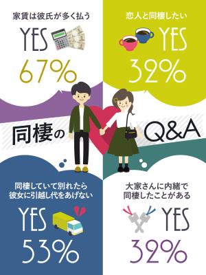 不動産業界に特化したインターネットサービスを提供する株式会社いえらぶGROUP(本社:東京都新宿区、代表取締役:岩名泰介 以下、「いえらぶGROUP」)は2015年9月28日、全国を対象として同棲に関するアンケート調査を行い、その調査結果をまとめましたのでご報告いたします。