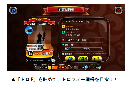 「トロフィーバトル」は、各キャラのトロフィー獲得を目指して、全国のプレイヤーとバトルを行なう