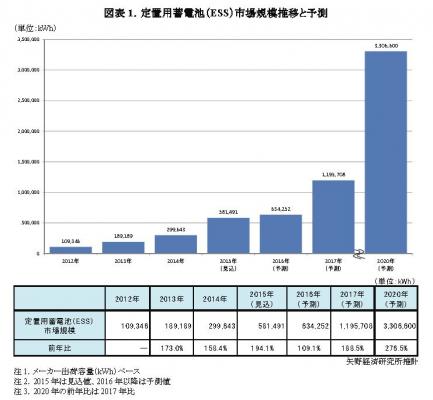 池(ESS)を牽引役に2017年の同市場規模を119万5,708kWhと予測
