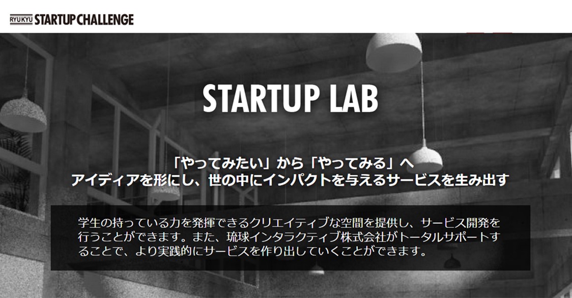 琉球大学産学官連携推進機構(産学官連携推進機構長:屋 宏典)と琉球インタラクティブ株式会社(本社:沖縄県宜野湾市、代表取締役社長:臼井 隆秀、以下「琉球インタラクティブ」)は、『Ryukyu Startup Challenge(琉球スタートアップチャレンジ)』の一環として、県内大学生・専門学生が起業や新サービスを構築するための活動場所「Startup Lab(スタートアップ・ラボ)」を2015年10月14日(水)にオープンします。