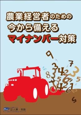 小冊子「農業経営者のためのマイナンバー制度対策」は、有限会社人事・労務が運営する無料農業経営支援ポータルサイト「われらまちの農縁団」の会員として登録(登録は無料)して頂いた方に配布させて頂いております。