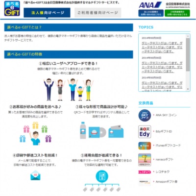 「選べるe-GIFT」ホームページでは、「法人様向けページ」と「ご利用者様向けページ」の2種類のページを用意。