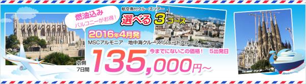 ◆2016年4月発 MSCアルモニア号で行く 驚安!地中海ショートクルーズツアー
