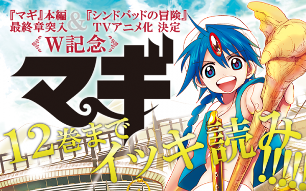 「マギ」が最高に盛り上がりを見せる中、テレビアニメ化する「マギ シンドバッドの冒険」の主人公・シンドバッドをより深く知って頂こうということで、彼に重大な転機がおとずれる「マギ」12巻までをマンガワンでイッキ読みできるキャンペーンを開催致します。