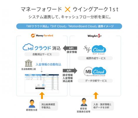 株式会社マネーフォワード(本社:東京都港区、代表取締役社長CEO 辻庸介、以下マネーフォワード)の「MFクラウド消込」と、ウイングアーク1st株式会社(本社:東京都渋谷区、代表取締役社長CEO 内野弘幸、以下ウイングアーク1st)の帳票クラウドサービス「SVF Cloud」とBIクラウドサービス「MotionBoard Cloud」が、キャッシュフローの見える化を実現するため、システム連携を本日開始いたします。今後、両社の連携で、より利便性の高いクラウドシステムの提供を目指します。