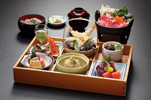 ■ 食事&宿泊:夕食=「和食処 翠州亭」で会席御膳/朝食=ホテル1階で焼きたてパンや石窯で焼き上げたベーコン、ハムなど。/宿泊は全室スイートタイプの「ホテルトリニティ書斎」でゆったりお過ごしいただけます。