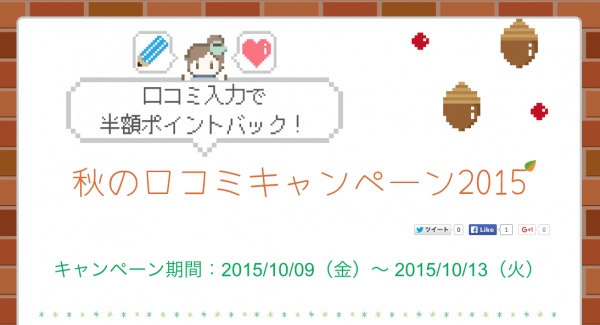 ◆口コミ入力で半額ポイントバック!『秋の口コミキャンペーン2015』について