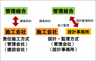 設計・工事監理と施工を分離して発注する方式。管理会社もしくは設計事務所が設計(仕様書作成)・工事監理を行ない、施工会社は施工を請負います。