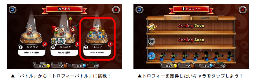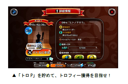 「トロフィーバトル」は、各キャラのトロフィー獲得を目指して、全国のプレイヤーと