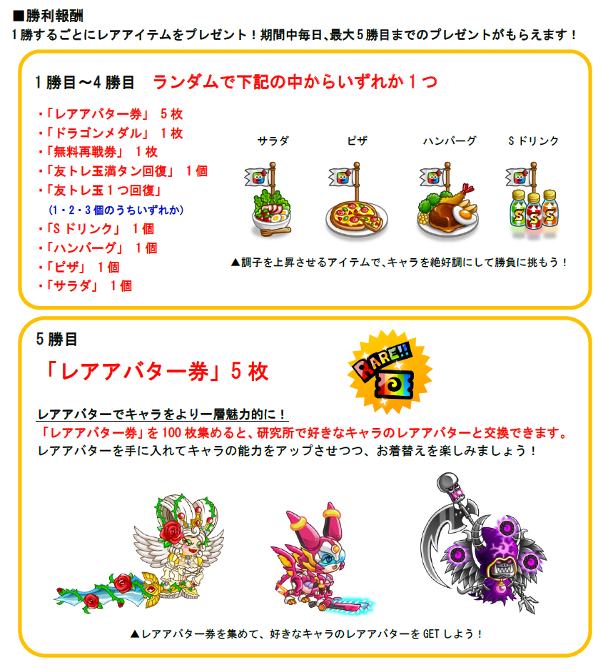期間中、フリー対戦を腕くらべモードOFF の状態で勝利すると、豪華レアアイテムが1つ手に入ります。