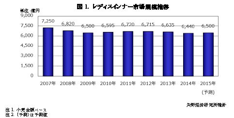◆2014年のレディスインナーウェア市場規模は前年比97.1%の6,440億円、