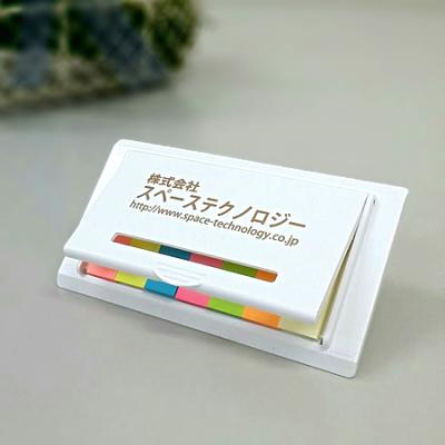 西日本を中心に、システム開発などのITサービスを提供する独立系開発ベンダーが、10月16日に開催される「クラウド・ITビジネスメッセ 2015 in 名古屋」への出展に際し、ケース入りふせんを名入れ制作。フェアー来場者へのノベルティグッズとしてご利用されるとのこと。名入れ印刷の図案は会社名と公式サイトURL、シンプルでありながら抜群の説得力でIT企業ならではの洗練さをうかがわせます。
