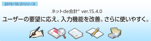 株式会社パイプドビッツ(東京都港区、代表取締役社長CEO 佐谷宣昭、東証1部パイプドHDグループ<証券コード3919>、以下「パイプドビッツ」)は、本日2015年10月21日に、中小規模事業者や個人事業主向けのクラウド型会計ソフト「ネットde会計(R)」「ネットde青色申告(R)」の新バージョン15.4.0を提供開始しましたので、お知らせいたします。