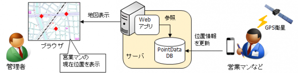 移動体のデータをデータベースで管理することで、Webアプリケーションを介さずにGPS等から得た位置情報を使ってデータを編集することができます。