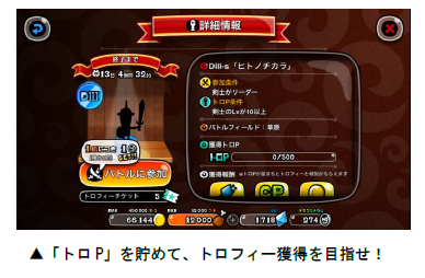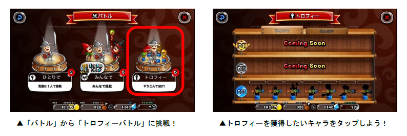 「トロフィーバトル」は、各キャラのトロフィー獲得を目指して、全国のプレイヤーとバトルを行なう
