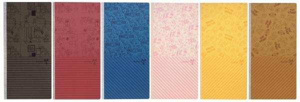 今回のデザインは、ファブリック調のパターン柄と落ち着いた色づかいでありながら、“実はディズニー”というミスマッチ感が大人の遊び心をくすぐります。キャラクターは、「ミッキーマウス」、「ミニーマウス」、「ドナルドダック」、「デイジーダック」、「くまのプーさん」、「トイ・ストーリー」の全6種類。メーカー希望小売価格(税抜)は420円、別売りの専用カバーは「1冊用」450円、「2冊用」500円です。