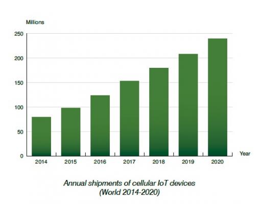 *Cellular IoT device market forecast until 2020