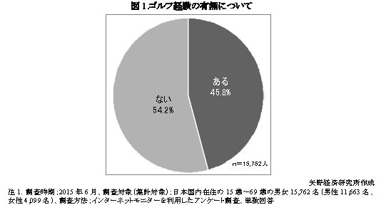 なお、過去にゴルフ経験を持つが、2015年6月に「ゴルフを続けるつもりはない」と回答した人と、「ゴルフを続ける」と回答したが、最近1年間(2014年6月~2015年5月)にゴルフ場、屋内/屋外練習場、ゴルフスクールのいずれも利用していない人を、本調査における「リタイアゴルファー」と定義した。