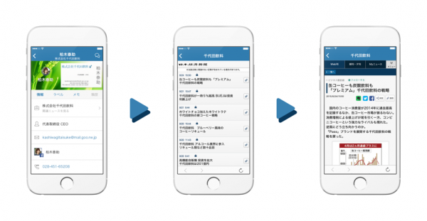 例えば、以前名刺交換をした相手の会社の業績や事業展開のニュースが新たなビジネスのきっかけになるかもしれません。記事を読んでEight上の名刺から連絡をとり、速やかにコミュニケーションすることができます。