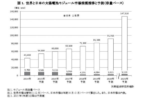 ◆2015年の太陽電池モジュール世界市場を前年比25.4%増の54,500MW、