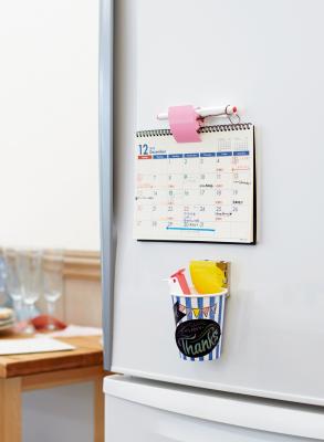 キッチン雑貨の定番、冷蔵庫に貼って使うマグネットには、「ずり落ちる」「開閉しづらい」などの不満が付きものです。「マグネットクリップ ホールド.」は、新開発のホールドラバーがスチール面にフィットし、その摩擦でずり落ちを予防する仕組みで、2015年度グッドデザイン賞を受賞しました。一般的なレシピ本(厚さ1cm重さ550g程度まで)もしっかりキープします。またプラス独自の機能「パワーアシストメカニズム」※によりクリップも軽い力で開けられます。キッチンで頻繁に使うレシピの切り抜きやカレンダー、ふきんなどのキッチン小物を留めるのにも便利です。カラーは3色。メーカー希望小売価格(税抜)は460円です。