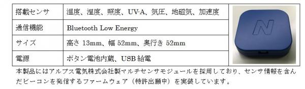 ■「BLEスマートセンサN」の仕様とイメージ