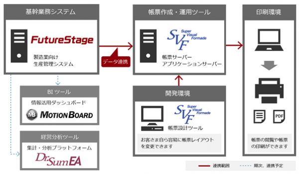 こうした背景を踏まえ、日立システムズはこのたび、ウイングアーク1stの帳票基盤ソリューション「SVF」を「FutureStage 製造業向け生産管理システム」の標準機能として組み込みました。