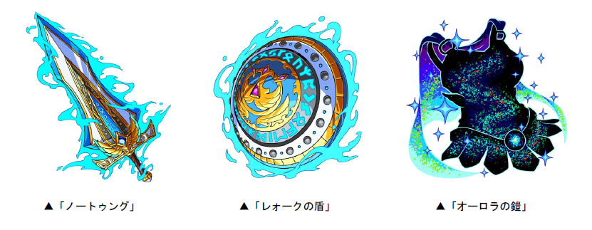 ダンジョンのボスを倒すと、宝箱から限定子分カード「ノートゥング」「レォークの盾」「オーロラの鎧」が
