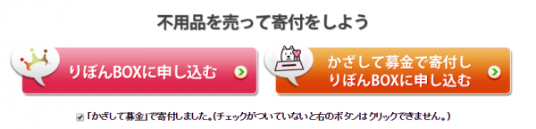 キャンペーンページ(http://brandear.jp/lp_csr03 )より、「『かざして募金』で寄付しました。」にチェックを入れ、2つある申込みボタンのうち、右側の「かざして募金で寄付しりぼんBOXに申し込む」のボタンからお申込み下さい。