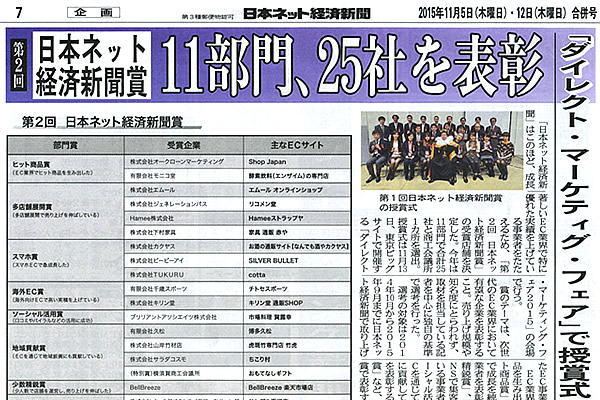 新聞掲載 日本ネット経済新聞 2015年11月5日・12日 合併号