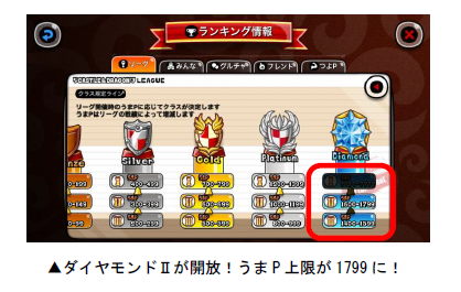「うまP」の上限が1799 に変更され、ダイヤモンドIIクラスが新しく開放されました。