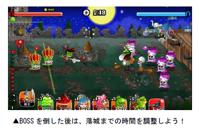また、11月15日(日)より、自分の城よりもLv が高い相手に攻撃をして、敵の城を残り時間10秒以下で