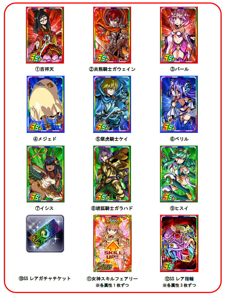 指定のSSレアカード・SSレアガチャチケット・女神スキルフェアリー・SSレア指輪の中からお好きなものを