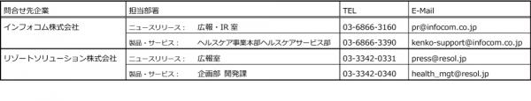 製品・サービス:ヘルスケア事業本部ヘルスケアサービス部 03-6866-3390 kenko-support@infocom.co.jp