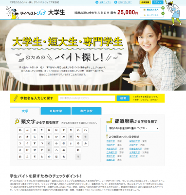 現在、多くの求人サイトでは、「学生応募不可」という条件の求人も多数存在し、検索条件を自分で細かく設定しなければ「学生が応募できる求人のみ」を探しにくい場合があります。「マイベストジョブ大学生版」では、自分が通学する学校を選択することで、自分の通っている学校周辺に存在する「学生が応募できるアルバイト求人のみ」をより簡単に探すことが可能になります。