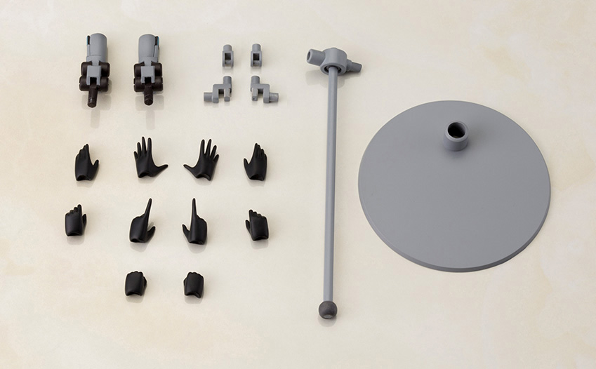 柳瀬敬之氏デザインによるメカデザインを島田フミカネ氏が美少女化したイラストをもとに立体化しました。「フレームアームズ・ガール アーキテクト」用の《武器》として“新規成型色”の「インパクトナックル(インパクトエッジに差し替え変更可能)」が2個付属。表情パーツは《塗装済み》なので、組み上げただけでも設定に近い仕上がりになります。塗装派の方の為に「瞳などのデカール」も付属されています。フレームアームズの「フレームアーキテクトTYPE001」の前腕を接続可能な「肘関節パーツ」や前腕部には専用の「3mm軸用接続パーツ」更に膝に「3mm径の軸を増設可能なアタッチメント」が左右分付属されるので、更に遊びの幅が広がります。