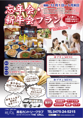 < 真名カントリークラブ「THE GRILL 忘年会・新年会プラン」概要 >