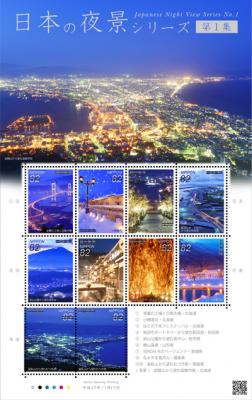 特殊切手「日本の夜景シリーズ 第1集」は、日本各地の有名な夜景スポットやライトアップされた観光地の