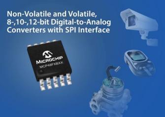 [NASDAQ:MCHP] - マイクロコントローラ、ミックスドシグナル、アナログ、Flash-IPソリューションのトッププロバイダであるMicrochip Technology Inc.(日本支社: 東京都港区浜松町、代表: 吉田洋介 以下Microchip社)は本日、D/Aコンバータ(DAC)製品を拡充するMCP48FXBXXファミリを発表しました。MCP48FEBXXファミリ6製品はEEPROMを内蔵しており、電源OFFでもDACの設定を保持できます。EEPROMを必要としない応用向けには、より低コストなMCP48FVBXXファミリを提供いたします。これらの低消費電力、1/2チャンネル、8/10/12ビット分解能、SPIシリアル インターフェイス内蔵DACは10ピンMSOPパッケージで提供します。コンシューマ、産業、車載市場における幅広い応用の例としてセットポイント/オフセット トリミング、センサ校正、計装、モータ制御等が挙げられます。