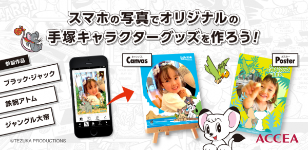 できたデザインでポスター、キャンバス、世界に1つだけの手塚キャラクターグッズを作成できます。