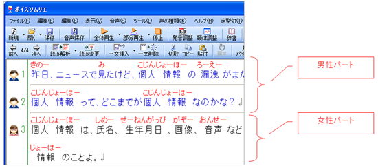 女性(やや高めの明るい声)、男性(やや高めの明るい声)を作成可能