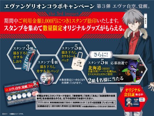 第3弾【3rdインパクト エヴァ自空、覚醒。】として、限定描き下ろしカヲルグッズが貰えるキャンペーンを2015年12月12日(土)より開始いたします。