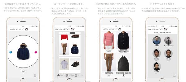 2015年11月26日からは第2弾として、人工知能でコーディネートを提案する機能、伊勢丹新宿本店メンズ館担当バイヤーの人工知能を見ることができる機能を追加し「人工知能接客」を行っております。