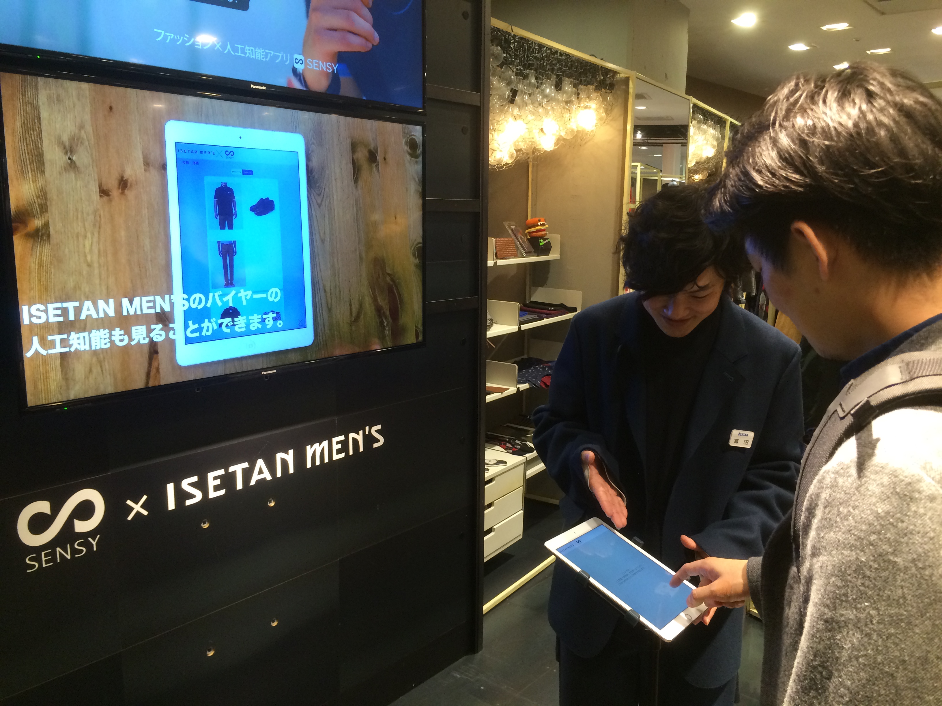 お客様のスマートフォン等や店頭スタイリストがタブレット端末にインストールされたSENSYを使って接客するサービスで、SENSYがお客さまの好みを解析し、より好みに合った提案をしています。2015年9月16日(水)から、メンズ館1階で行われたメンズファッション雑誌『SENSE』との連動企画"UTILITIES SENSE MARKET in ISETAN"にて、実際にSENSYを体験できるサービスを実施。この企画には 約30以上のブランドが参加しました。