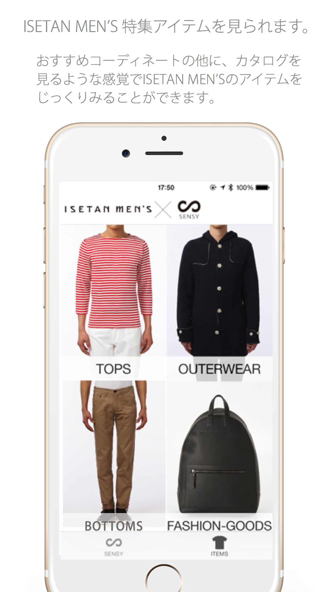 ISETAN MEN ‘Sの特集アイテムをアプリ内で一覧できます。そのままお買い物いただけます。