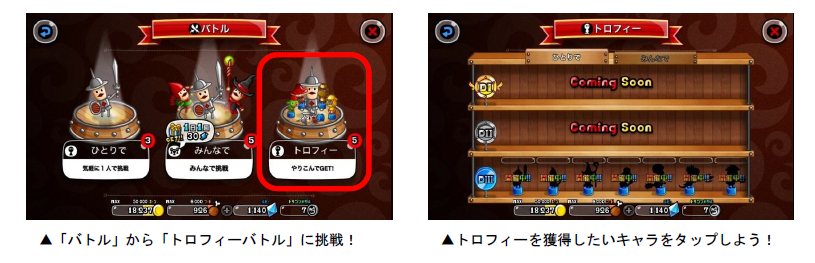 「トロフィーバトル」は、各キャラのトロフィー獲得を目指して、全国のプレイヤーとバトルを行なう