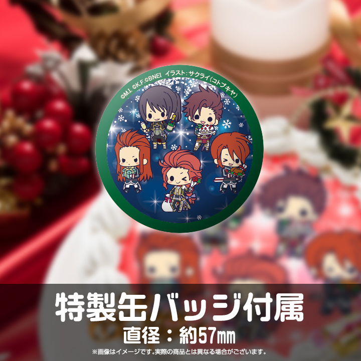『テイルズ オブ』シリーズに登場するキャラクター達(ゼロス、ルーク、アッシュ、ユーリ、アスベル)をラバーストラップでおなじみ、人気イラストレーター サクライ氏による可愛らしいデフォルメイラストにて再現したデコレーションケーキをご用意しました。デコレーション部には人気キャラクターが大きく鮮やかに描かれており、もちろん全てお召し上がりいただけます。上質な生クリームや新鮮な卵、国産小麦を100%使用しており、味のクオリティにもこだわった商品です。サクライ氏イラストによる特製缶バッジ(57mm)も付属します。